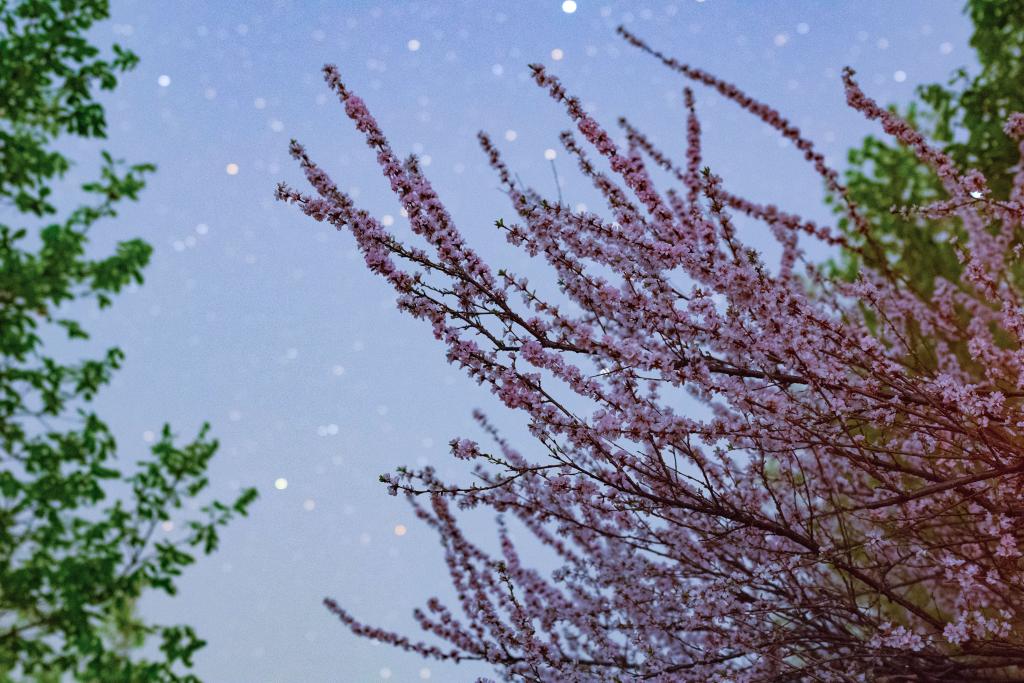 在黑龙江省佳木斯市拍摄的星空下的美人梅(4月30日摄)。新华社发(曲玉宝 摄)
