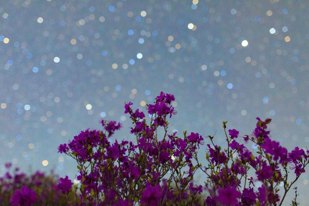 在黑龙江省佳木斯市拍摄的星空下的杜鹃花(4月29日摄)。新华社发(朱宗强 摄)