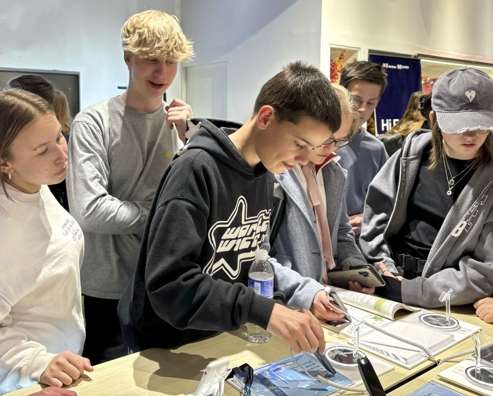 2024年4月9日,中德两国中学生在位于北京中关村软件园一家企业参观。新华社记者 赵旭 摄