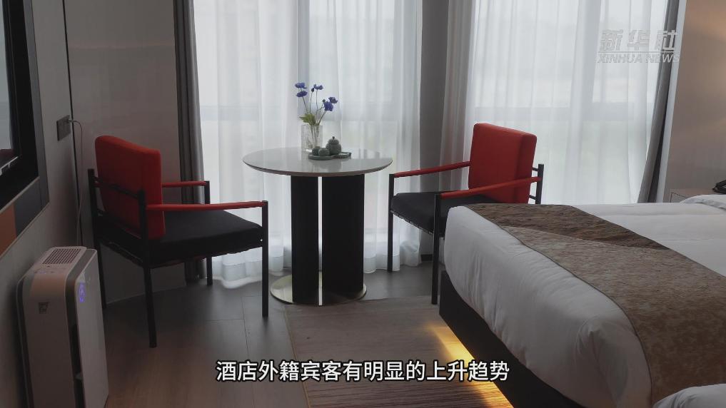 在闵行区这家新开业的酒店,来上海参加国际性展会的外籍商旅客人成为重要客源之一。管理方注意到,许多国际旅客会在展会开始前几天抵达,忙完工作后再在上海多停留几天,他们的脚步也进一步扩展到了上海的景区、景点和餐饮、娱乐场所等。