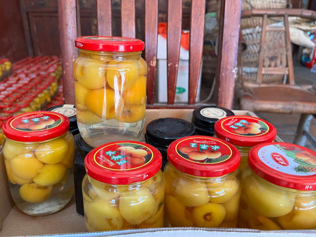 莆田当地食品企业生产的枇杷罐头样品。(张力 摄)