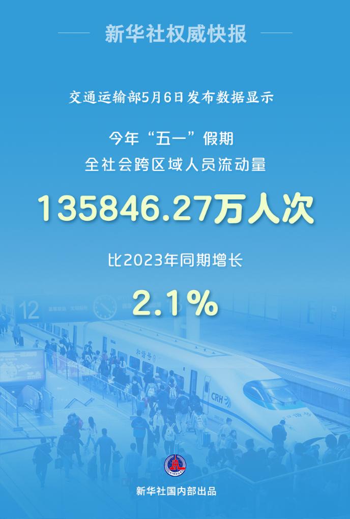 全社会跨区域人员流动量135846.27万人次,比2023年同期增长2.1%