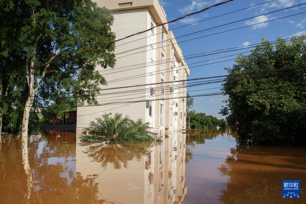 这是5月5日在巴西南里奥格兰德州圣莱奥波尔多拍摄的被洪水浸泡的建筑与街道。新华社发(克劳迪娅·马尔提尼 摄)