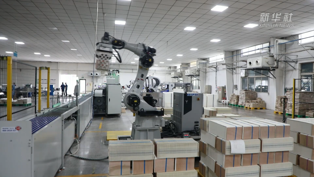 无人车在车间穿梭、机械手自动喂书,在淄博市桓台县的山东韵杰文化科技有限公司,印刷车间里只有几名工人在操作数字化生产设备。