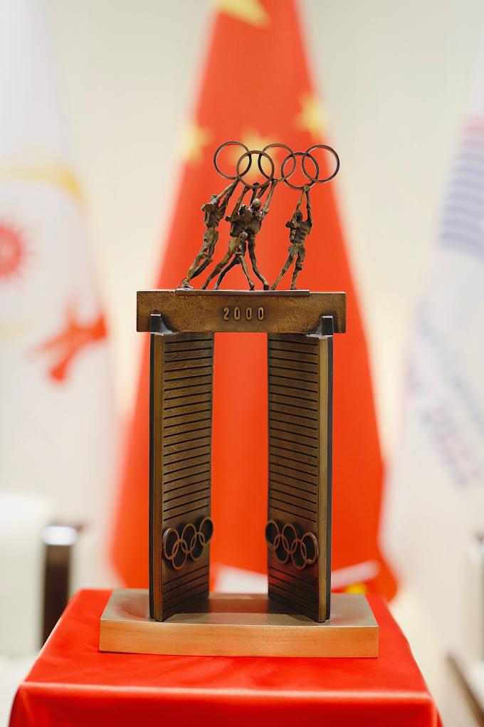 据了解,小萨马兰奇向杭州亚运会博物馆捐赠了象征理解、和平、繁荣和福祉的纪念雕塑——“千禧门”,杭州市副市长陈卫强则向萨马兰奇体育发展基金会回赠了杭州亚(残)运会纪念青瓷盘以及捐赠证书。