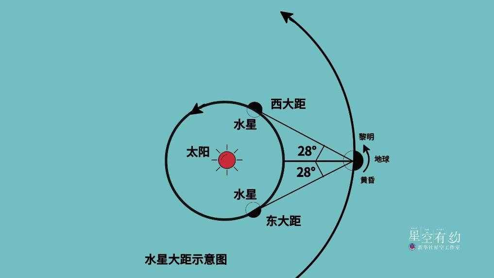 中国天文学会会员、天津市天文学会理事杨婧表示,想一睹水星“真容”,要等到它与太阳的角距离达到最大时,也就是从地球上看水星距离太阳最远的位置。如果水星出现在太阳东边,称为东大距,此时水星在黄昏时的西边低空出现;如果水星出现在太阳西边,称为西大距,此时水星在黎明时的东方低空出现。每年通常会有6至7次水星大距,其中包括东大距和西大距。