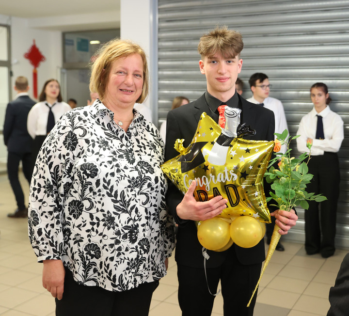 5月3日,在匈中双语学校,12年级毕业生马蒂和家人在毕业典礼上合影。