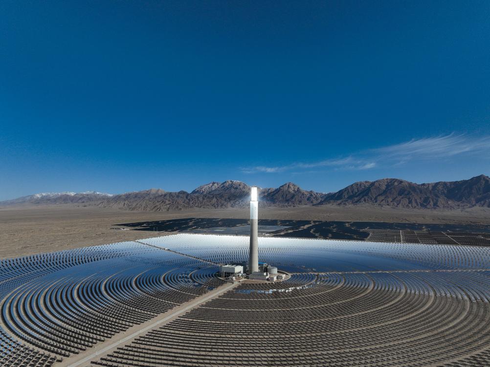 这是4月23日在青海省海西蒙古族藏族自治州德令哈市光伏(光热)产业园拍摄的光热电站(无人机照片)。新华社记者张龙 摄