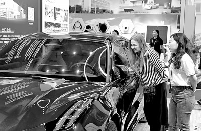 采购商在第135届广交会上参观新能源汽车。新华社发