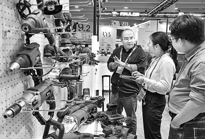 印尼零售企业在广交会五金工具展区了解中国企业的展品。新华社发