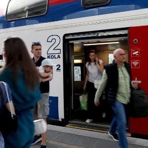 2024年4月29日,在塞尔维亚诺维萨德火车站,人们走下匈塞铁路贝尔格莱德至诺维萨德的列车。连接塞尔维亚首都贝尔格莱德和匈牙利首都布达佩斯的匈塞铁路,全长近350公里,是中国与中东欧国家共建“一带一路”的标志性项目。新华社记者李颖摄