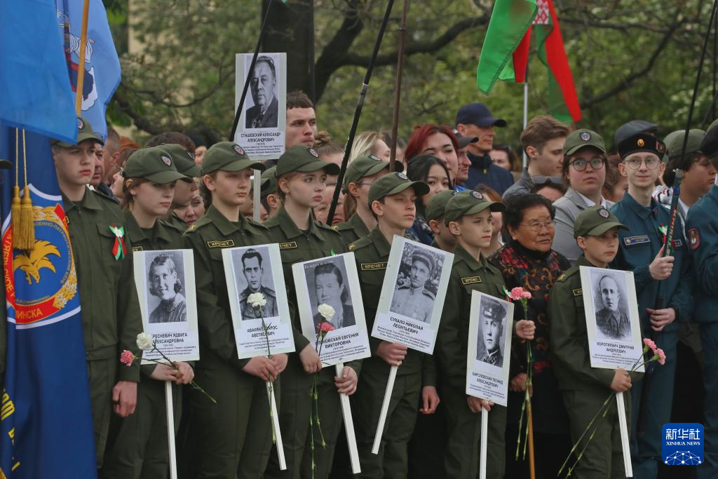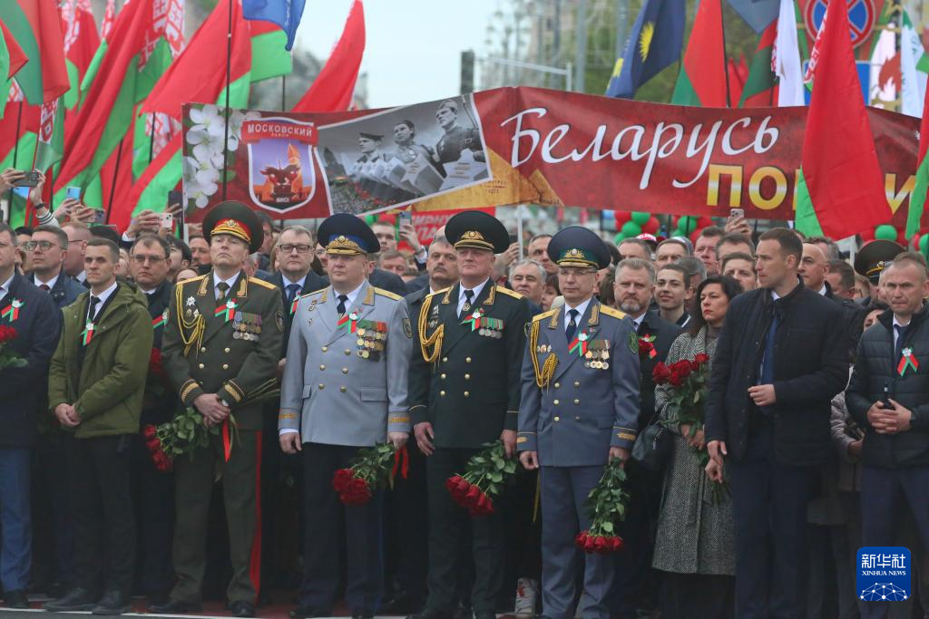 5月9日,人们在白俄罗斯首都明斯克胜利广场参加纪念活动。新华社发(任科夫 摄)