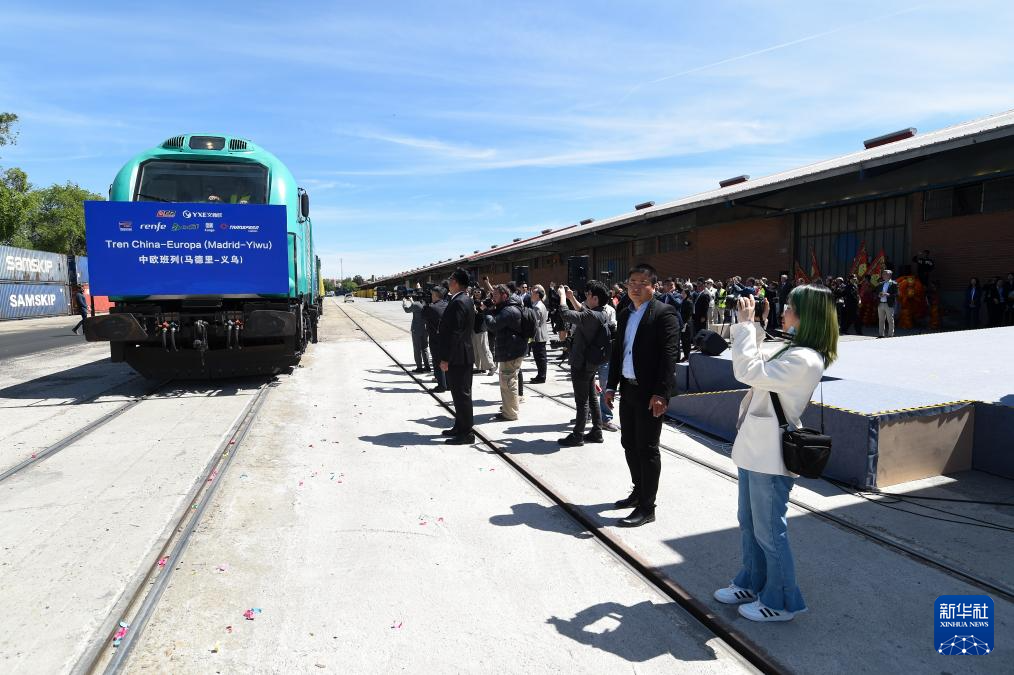 新华社马德里5月9日电(记者胡加齐 谢宇智)中欧班列(义乌—马德里)开行十周年纪念号班列8日从西班牙首都马德里的阿布罗尼加尔车站鸣笛发车。