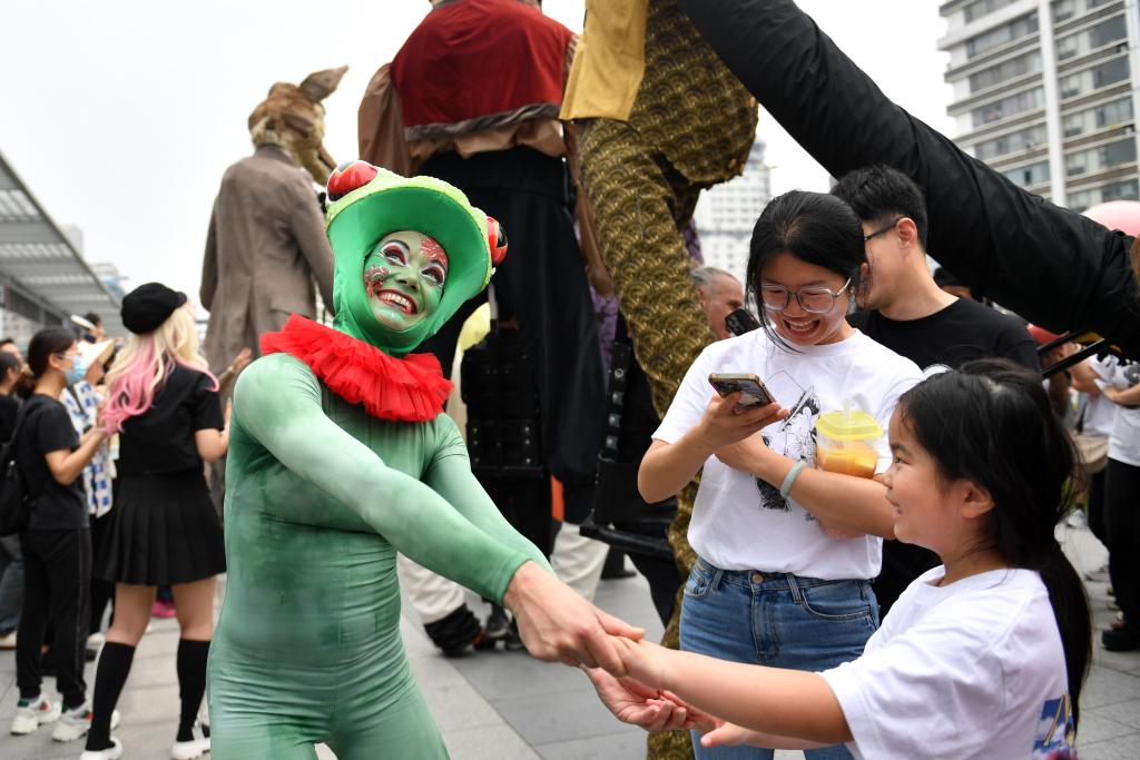 5月8日在长沙的演出现场,法国著名的阿奇博·卡拉曼特拉剧团演员们通过巨型木偶、马戏和空中舞蹈等形式进行表演,营造出了梦幻、幽默诙谐和互动感强的演出风格,收获了现场观众的阵阵掌声。