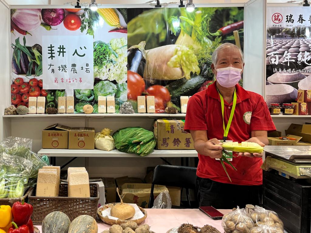 5月10日,来自云林县的农户展示有机蔬菜。新华社记者 赵博 摄