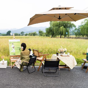 不远处的草坪上,“90后”庄园负责人朱思逸正忙着和团队筹划即将“上新”的篝火晚宴招待方案。