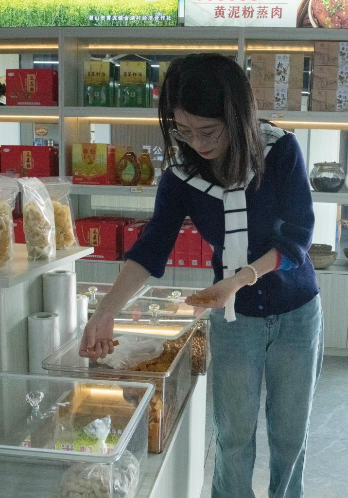 “我们并不单单是卖货,输出家乡的生活方式才高级,才有留给村民们的溢价空间。”透过直播间的玻璃窗,“想开文化”负责人吴品娇指着三排满当当的货架说,手工红薯角、芝麻糖、瓜蒌籽等皖南3个山村的20多种土特产销量在今年都创下新纪录,目前每次直播有近万元收益。