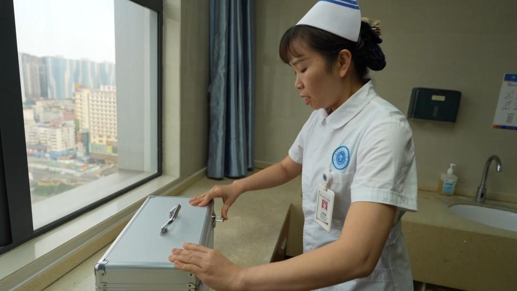 在广西南宁市第二人民医院19楼的胃肠外科,护士长苏锦绣正在整理药箱,为上门护理服务做准备。南宁市第二人民医院在2021年8月启动开展“互联网+护理服务”试点工作,医院周边的居民通过官方小程序下单,即可预约上门护理服务。