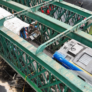 5月10日,救援人员在阿根廷首都布宜诺斯艾利斯火车相撞事故现场工作(无人机照片)。新华社发(马丁·萨巴拉摄)