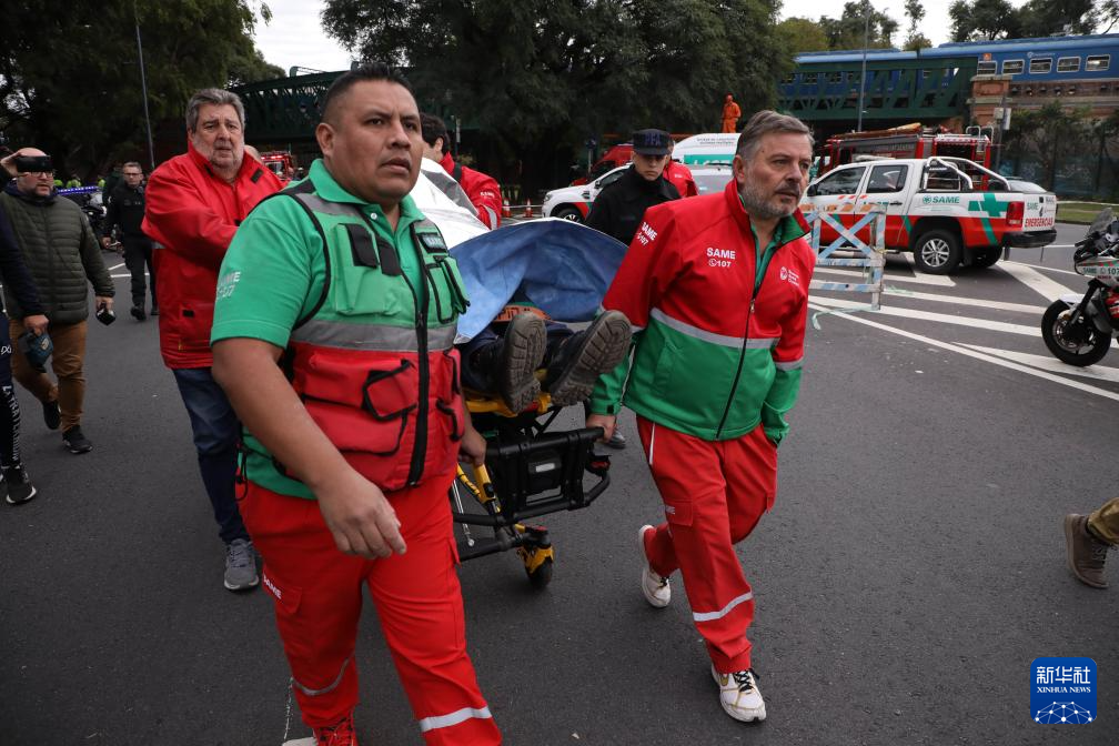 5月10日,救援人员在阿根廷首都布宜诺斯艾利斯火车相撞事故现场附近转运伤员。新华社发(马丁·萨巴拉摄)