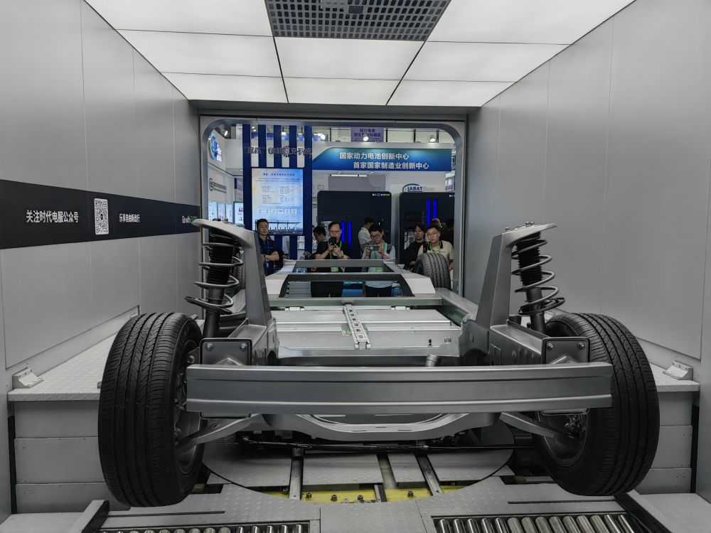 这是在四川省宜宾市举行的2023世界动力电池大会上展示的新能源汽车换电系统(2023年6月9日摄)。新华社记者 胡旭 摄