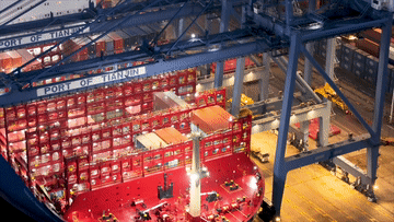 24小时,天津港码头紧张作业毫不停歇,展现着源源不断的开放发展新动能。