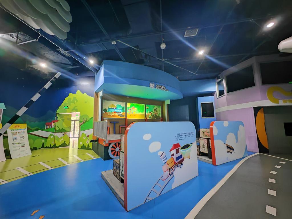 在儿童体验区,夸张的卡通造型、萌味十足的布景,趣味性强的多媒体互动平台等营造出一个由安全降落、小火车剧场、报警急救中心等组成的模拟安全社区与安全街道,小朋友在快乐的玩耍中,得以了解日常生活中存在的危险,培养自我保护意识。