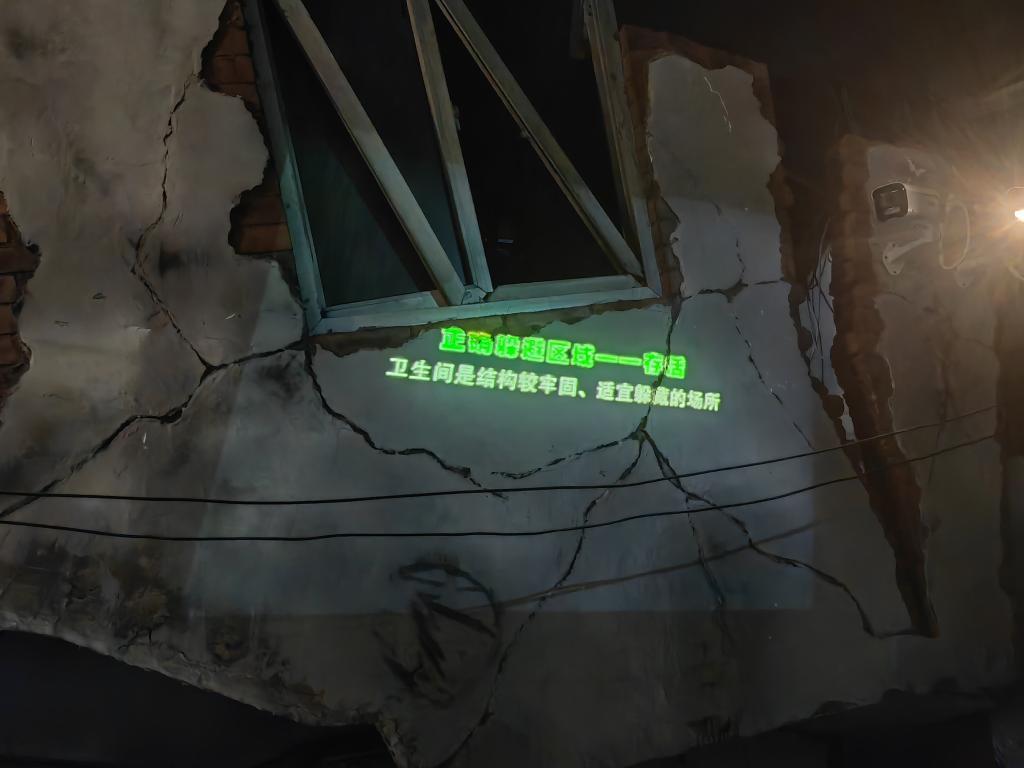 在四川省防灾减灾教育馆的模拟街道处,可以看到逼真的震后模拟场景。新华社记者 张海磊 摄