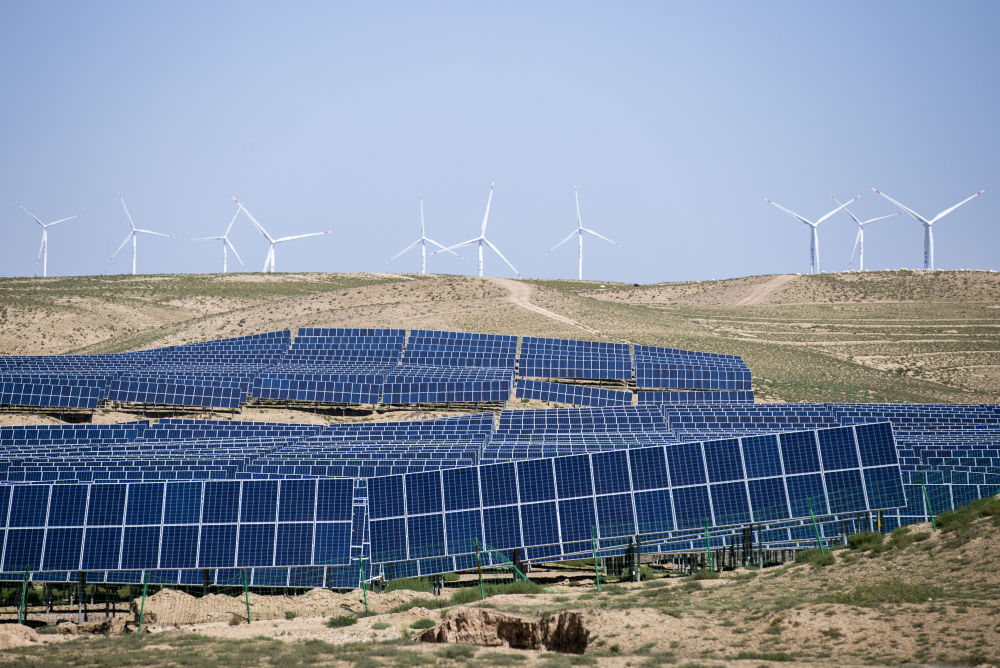 宁夏灵武,国能宁东200万千瓦复合光伏基地,370多万块光伏板沿着广袤荒滩起伏,在午后骄阳下泛起“粼粼波光”,不断向浙江等地输送绿电。