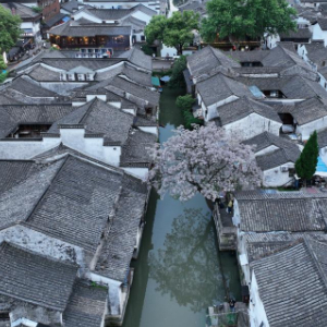 鸟瞰仓桥直街(无人机照片,4月24日摄)。