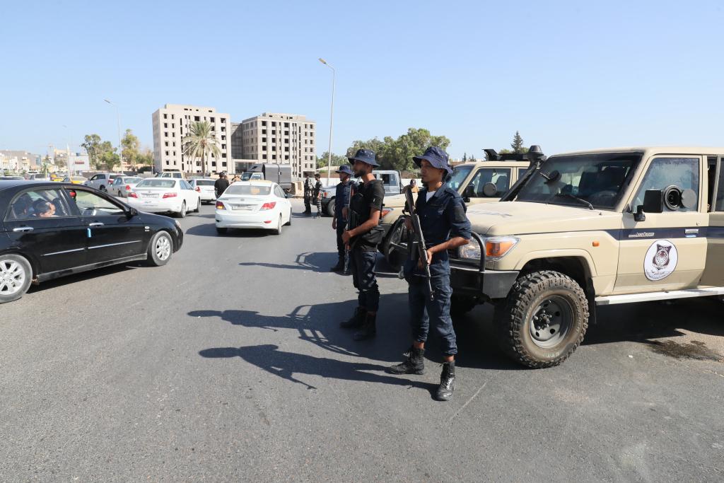 2023年8月16日,利比亚冲突停火后,利比亚公共安全部门人员在的黎波里的艾因扎拉区保障安全。 新华社发(哈姆扎·图尔基亚摄)
