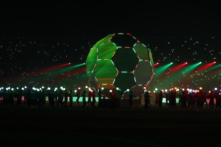 这是3月8日拍摄的的黎波里国际体育场开幕式上的灯光秀表演。新华社发(哈姆扎·图尔基亚摄)