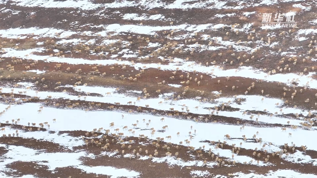 藏羚羊是国家一级保护动物,被誉为“高原精灵”。近日,在西藏北部的羌塘国家级自然保护区尼玛县区域,大群怀孕的雌性藏羚羊开始集结成群,向习惯产羔地迁徙。迁徙的藏羚羊集结成数千只的大群,在白雪皑皑的山脊线上前进,场面蔚为壮观。