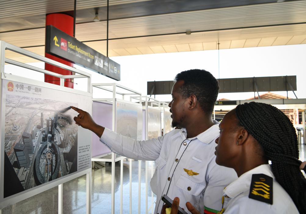 3月22日,在肯尼亚首都内罗毕,人们参观中非共建“一带一路”务实合作图片展。新华社记者韩旭摄