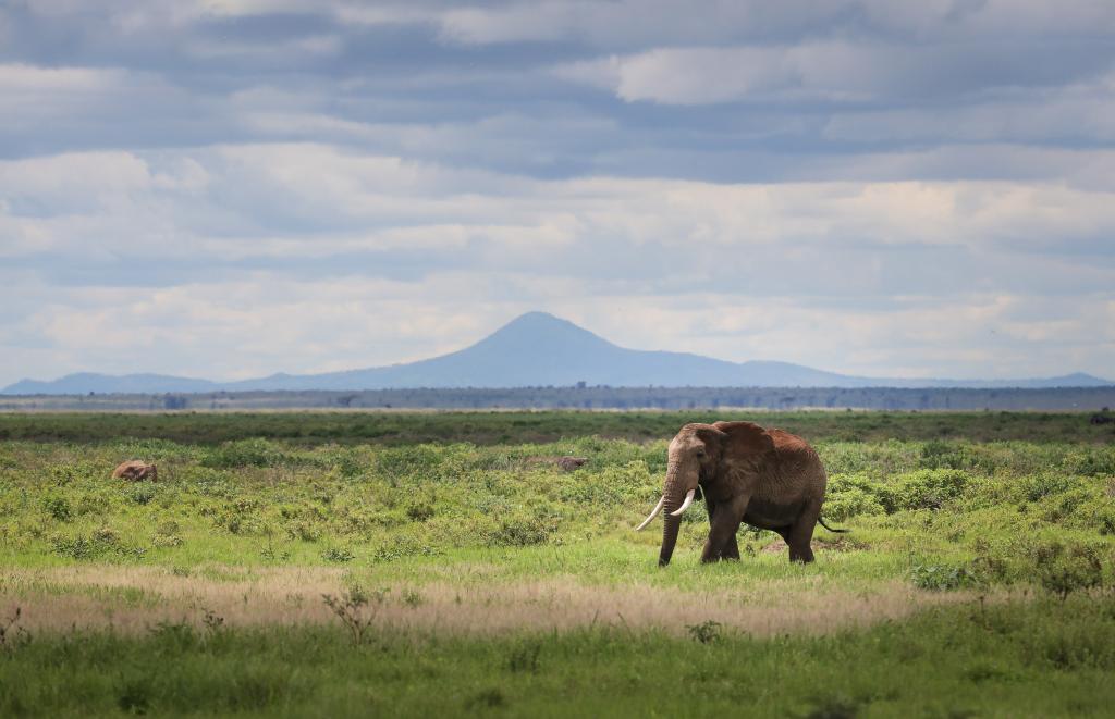 4月27日,在肯尼亚卡贾多县,一头大象在肯尼亚安博塞利国家公园里活动。新华社记者韩旭摄