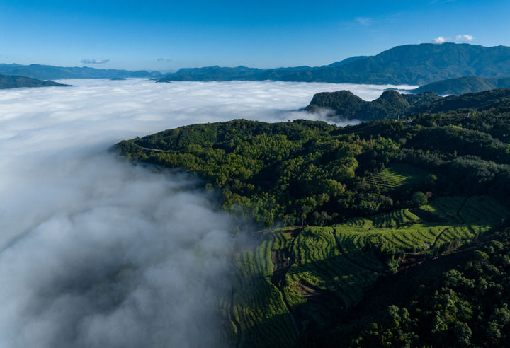 这是在云南省临沧市沧源佤族自治县拍摄的云海间的茶园(资料照片)。新华社记者 江文耀 摄