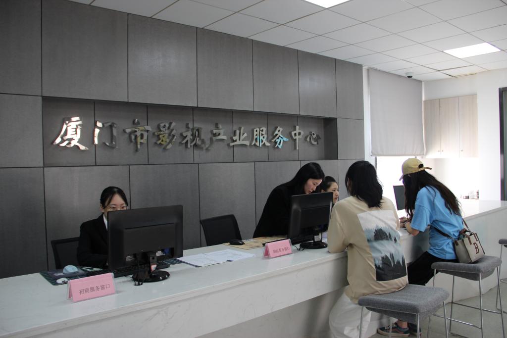图为影视剧组工作人员在厦门市影视产业服务中心服务窗口咨询问题。(受访者供图)