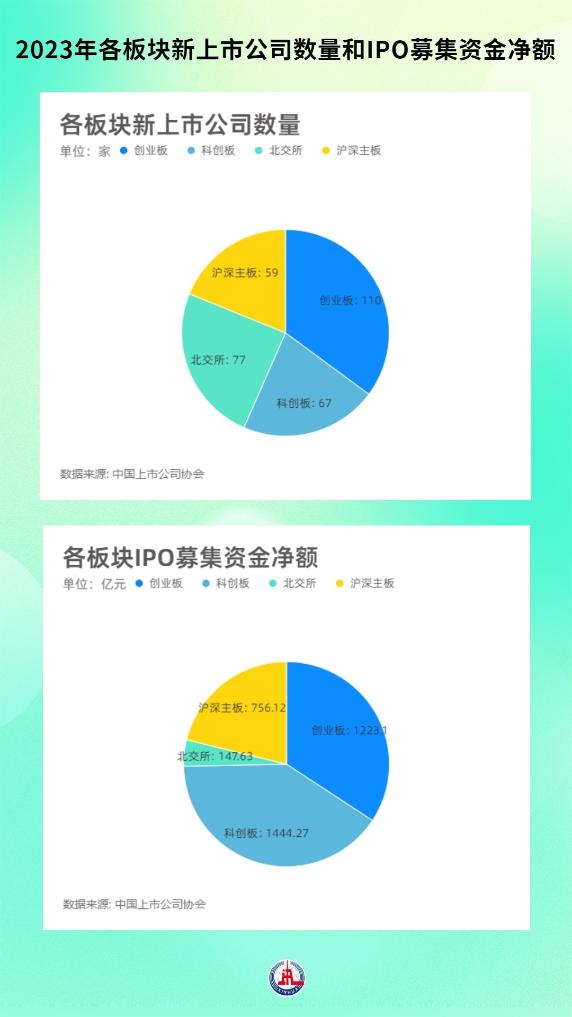 创新资本加速汇聚,为新兴产业发展不断聚能。2023年,深市IPO和再融资募集资金超六成流向战略性新兴产业。与沪深主板相比,A股创新板块迎来更多新上市公司——创业板、科创板、北交所2023年合计新上市公司数量和IPO募集资金净额分别占到全市场的81%和79%。