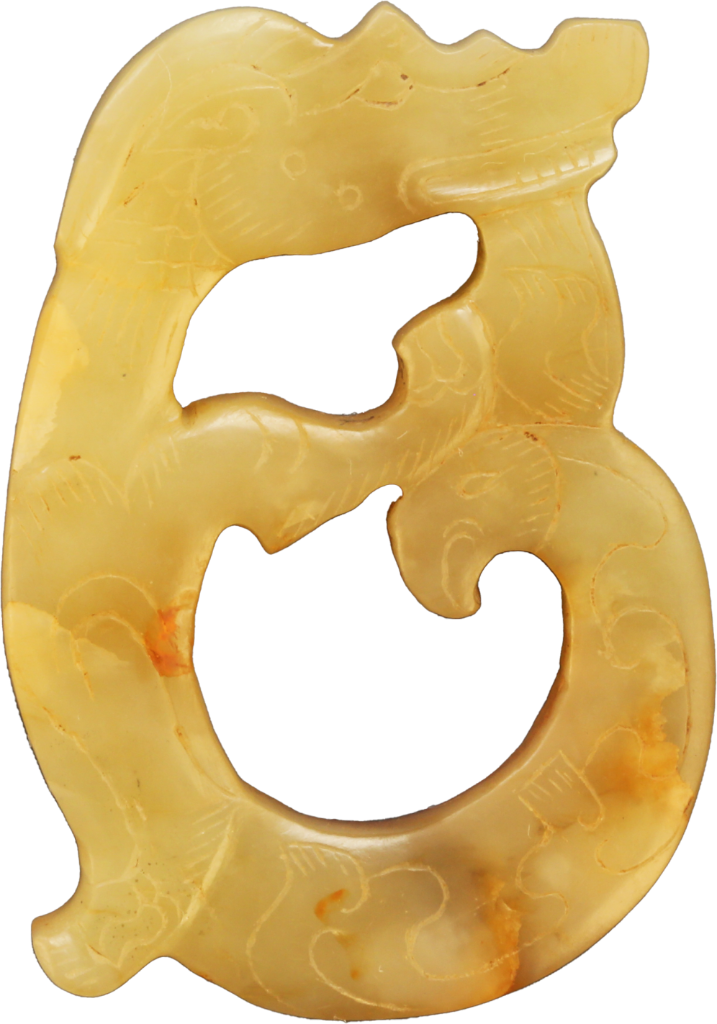 这是2015年江苏省扬州汉墓群出土的龙凤纹玉佩。(受访者供图)
