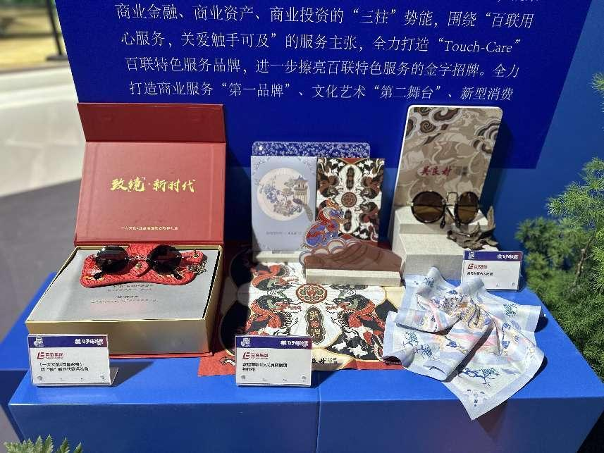 在百联集团的展台上,吴良材品牌展示了与敦煌博物馆合作的文创产品。(受访者供图)