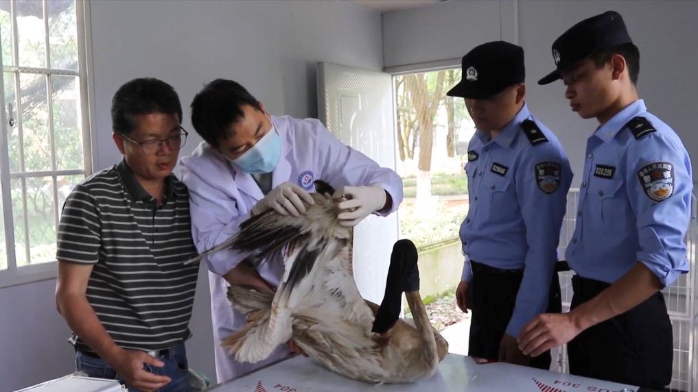 吴城卫生院的医生对幼鹤进行了检查,诊断出其右翅初级飞羽有轻微骨折,在野外无法飞翔。考虑到幼鹤的生命活力和恢复能力,医生决定让幼鹤在吴城保护管理站的候鸟救助中心疗养,待幼鹤康养一段时间恢复体力后,就可以重返蓝天。白鹤是江西的“省鸟”,又称亚洲鹤、黑袖鹤。