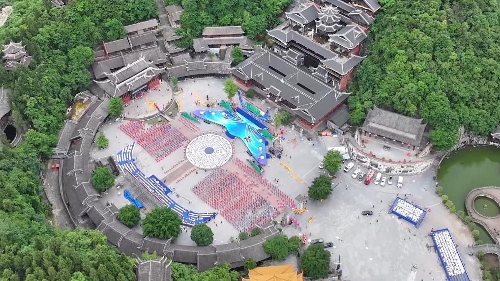 5月15日,第十三届中国乌江苗族踩花山节在重庆市彭水苗族土家族自治县的蚩尤九黎城启幕。启幕现场万人同唱娇阿依、万人共舞“踩花山”,庆祝彭水苗族同胞一年一度的重要节日——踩花山节。