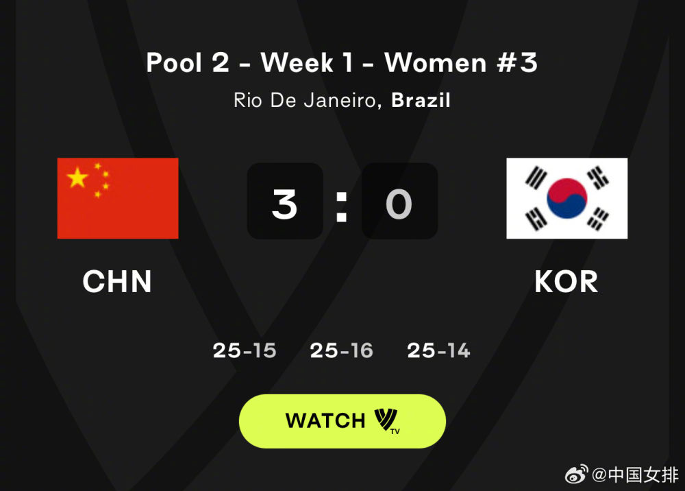 北京时间5月15日凌晨,2024年世界女排联赛首周巴西里约热内卢站,中国女排迎来首个对手韩国女排,最终中国队以3-0(25-15、25-16、25-14)获胜,收获开门红。