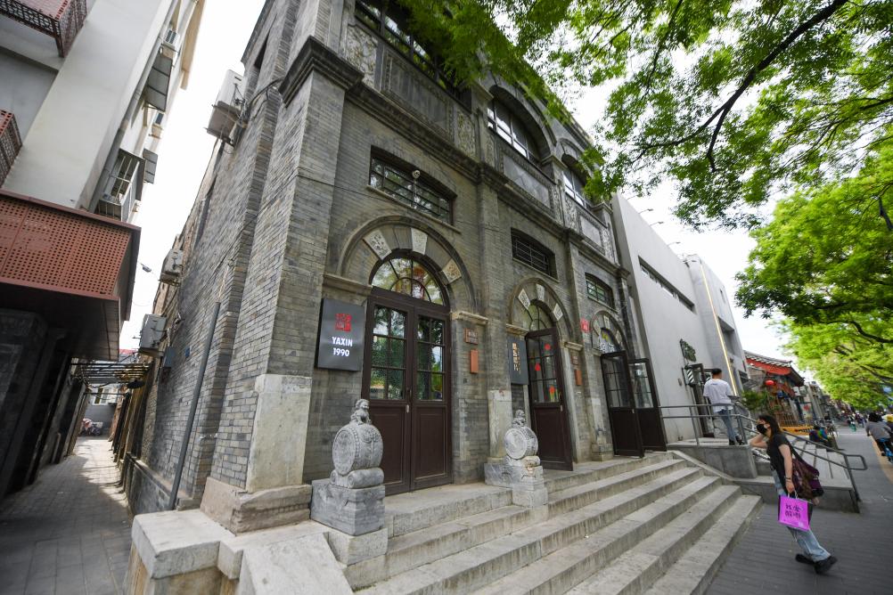 行人经过改造修缮后的东四南大街102号大兴公寓旧址(5月11日摄)。