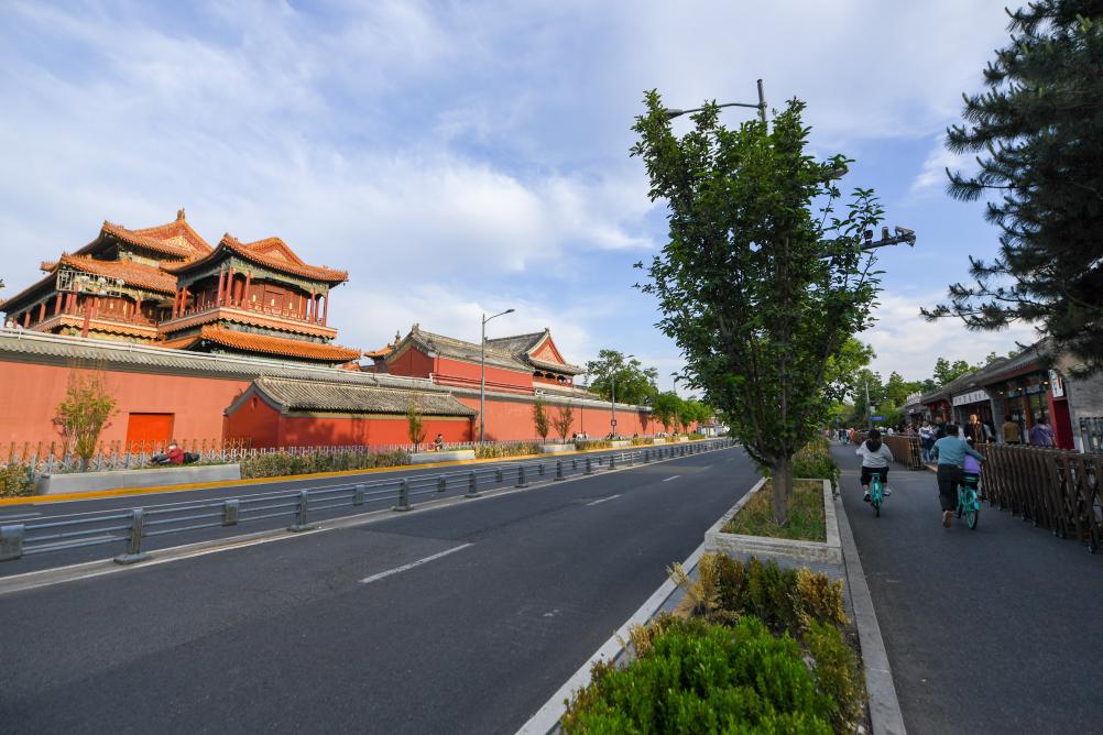 5月1日,市民游客在东四北大街骑行。崇雍大街改造推动“慢行优先”“健步悦骑”,推动“车辆优先”向“行人优先”转变,实现骨干道路功能转型为绿色交通主导,让“健步悦骑”体验更为顺畅。转风貌、提环境、增品质、调业态