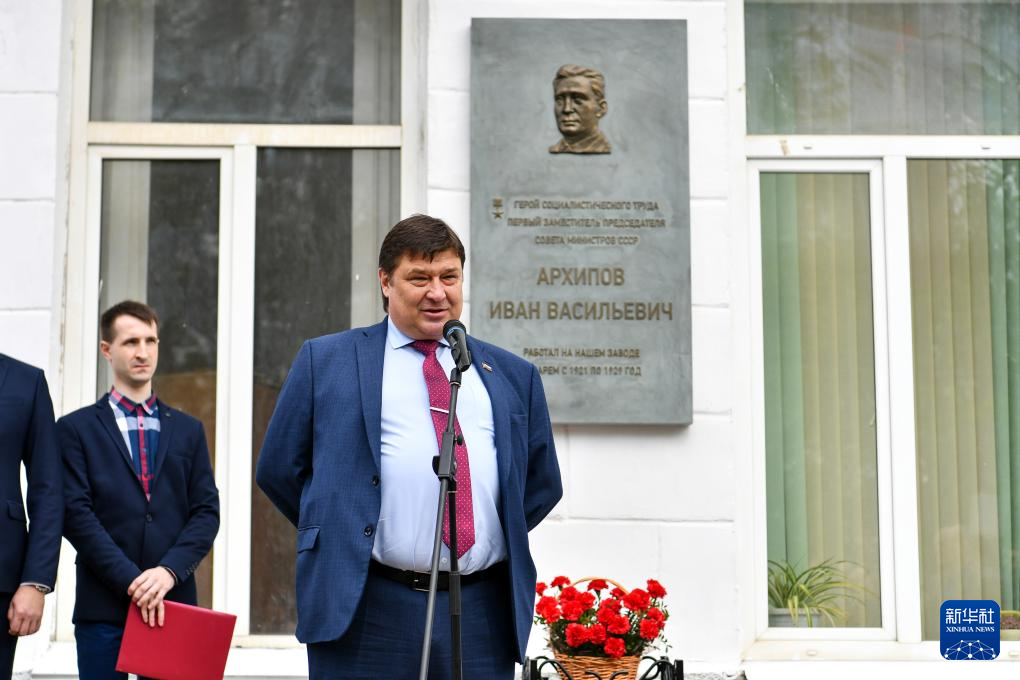 新华社俄罗斯卡卢加5月15日电(记者陈汀)原苏联援华专家组总负责人伊万·瓦西里耶维奇·阿尔希波夫纪念牌15日在俄罗斯卡卢加州卡卢加市揭幕。中俄各界人士和阿尔希波夫后代出席揭幕仪式。