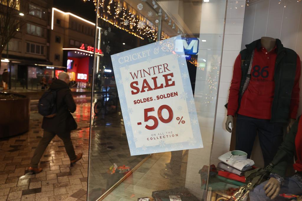 1月5日,在比利时布鲁塞尔,行人从一家商店前走过。新华社记者赵丁喆摄