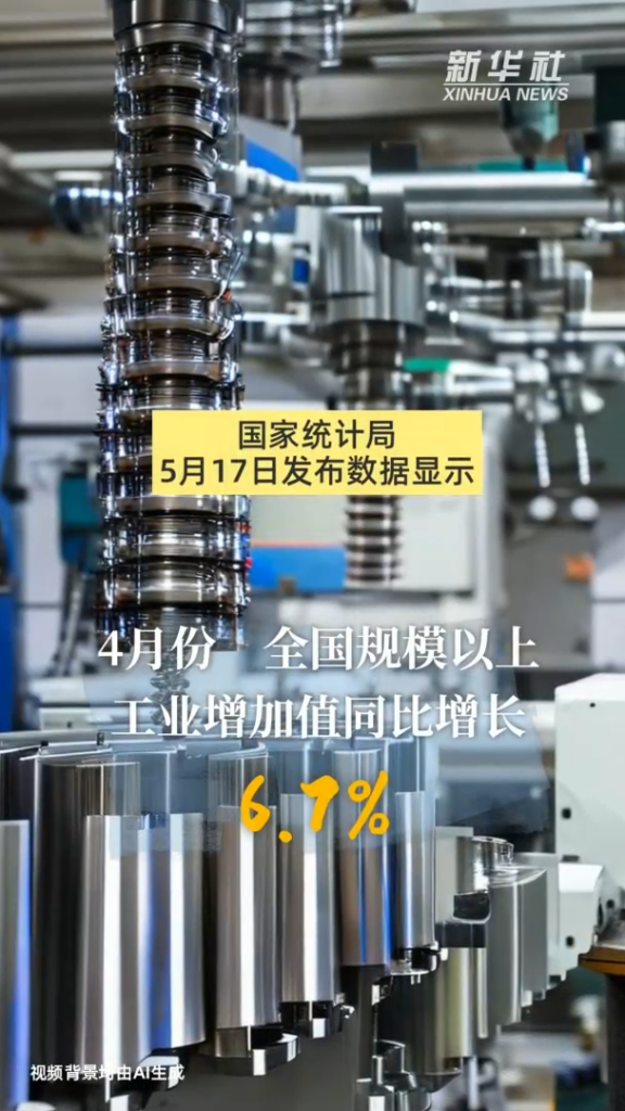 国家统计局5月17日发布数据显示,4月份,全国规模以上工业增加值同比增长6.7%;货物进出口总额36389亿元,同比增长8.0%;全国服务业生产指数同比增长3.5%。1-4月份,社会消费品零售总额156026亿元,同比增长4.1%,服务零售额同比增长8.4%;1-4月份,全国规模以上工业增加值同比增长6.3%,全国服务业生产指数同比增长5.0%;1-4月份,全国固定资产投资(不含农户)143401亿元,同比增长4.2%……生产需求平稳增长,就业物价总体向好,社会预期持续改善,高质量发展扎实推进,国民经济运行总体稳定,延续回升向好态势。