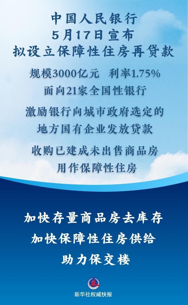 中国人民银行5月17日宣布,拟设立保障性住房再贷款。
