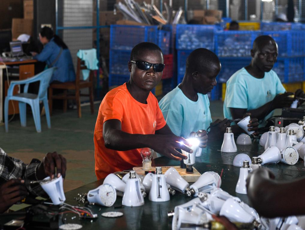 与鲁班工坊一路之隔的是中企明珠科技有限公司的厂房。明珠科技是最早入驻工业园的几家企业之一,主要生产照明用品。走进厂房,一排排工作台上摆放着各种工具,上百名乌干达员工身穿工作服,全神贯注地进行焊接作业。“过去,乌干达的LED灯具主要依赖进口,价格贵不说,坏了也没地方修。中国企业改变了这种情况。现在,我们公司每年生产约300万只LED球泡灯和日光灯等产品,销往乌干达各地。”当地技工约瑟夫·奥蒂姆说。